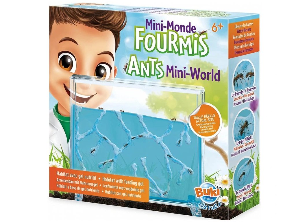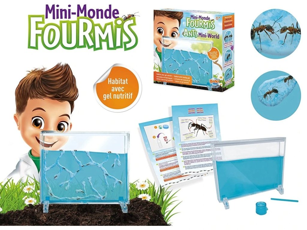 - Mravčia farma obsahuje: akvárium pre mravce, lupu a umelú paličku na vytvorenie prvých dier