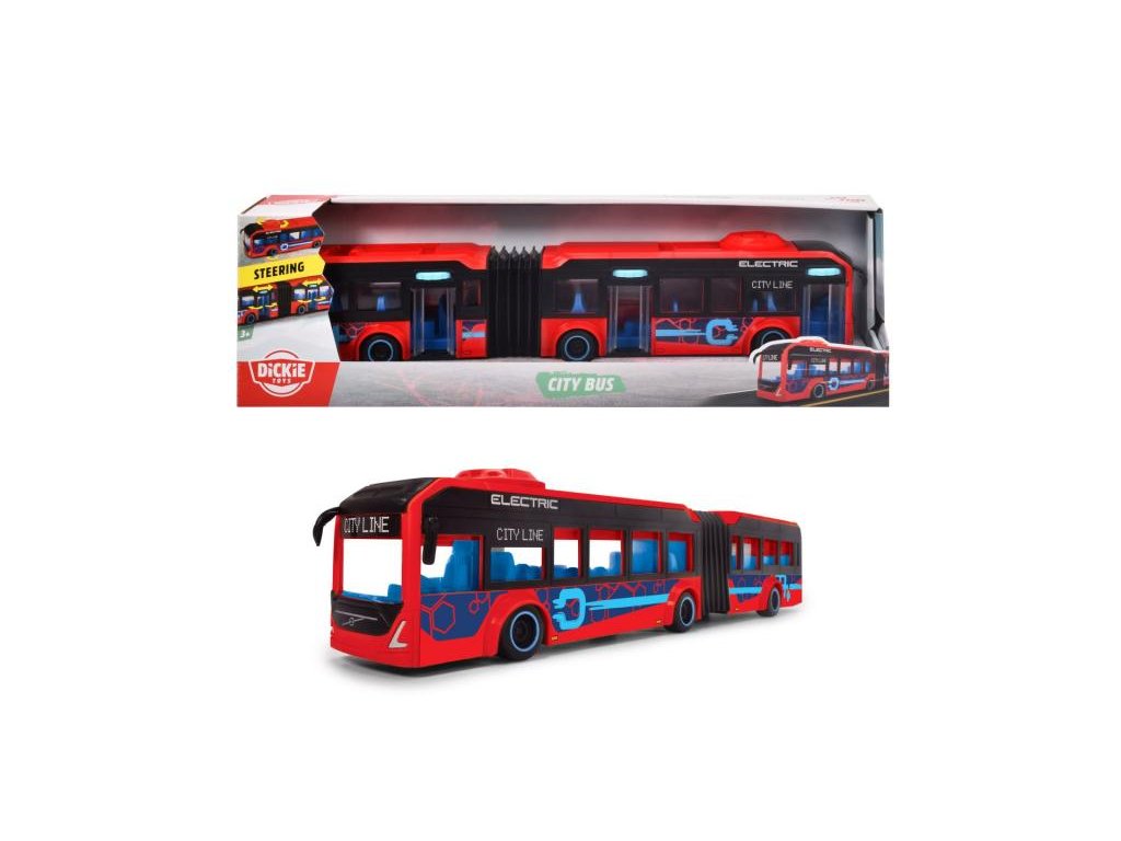 Autobus Volvo 7900E na voľnobeh, otáčaním kolieska na streche sa ovládajú predné kolesá, otváracie dvere. Dĺžka 40 cm.
