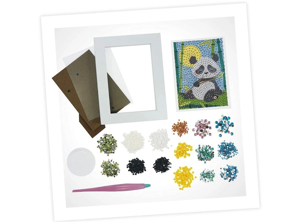 Sada GLITTERS obsahuje obrázok so samolepiacou vrstvou a šablónou s písmenami a číslami, pričom každé písmeno/číslo predstavuje určitú farbu a veľkosť kryštálu. Pomocou nástroja sa potom kryštáliky umiestňujú na šablónu. Výsledný obrázok sa vloží do rámčeka a tvorí krásnu dekoráciu.
