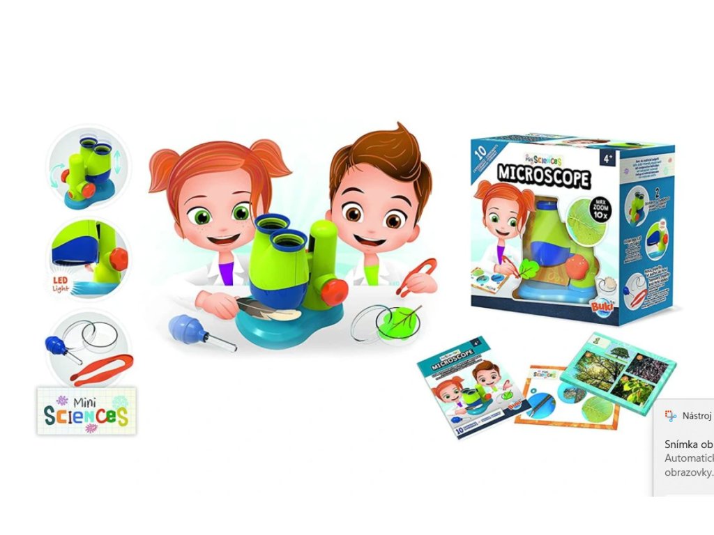 Mikroskop zo série MiniScience je určený pre tých najmenších bádateľov vo veku od 4 do 7 rokov. Má ergonomicky tvarované telo z kvalitného plastu, mäkké očnice disponuje širokou optikou pre lepšiu svetelnosť. Zväčšenie mikroskopu je možné plynule regulovať až do 10x zoom.