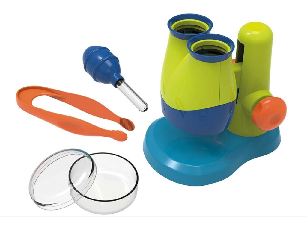 Tento mikroskop je vďaka tzv. stereo optike obzvlášť vhodný pre najmenšie deti, ktoré ešte nevedia privierať jedno oko. Môžu sa tak pozerať do mikroskopu rovnako ako do binokulárneho ďalekohľadu oboma očami.