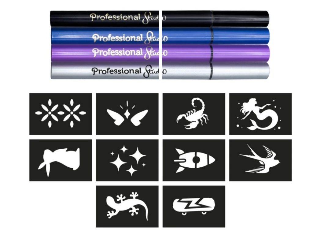 Kozmetické perá na kreslenie dočasných tetovaní v žiarivých farbách so strieborným efektom!
