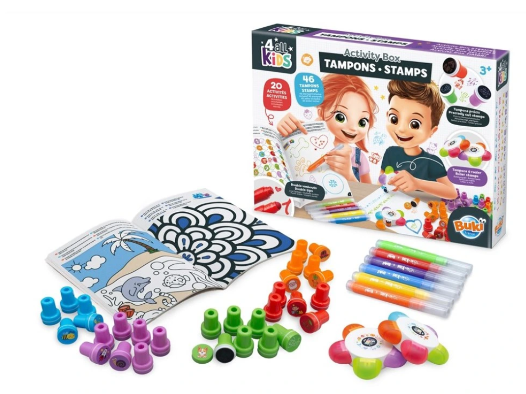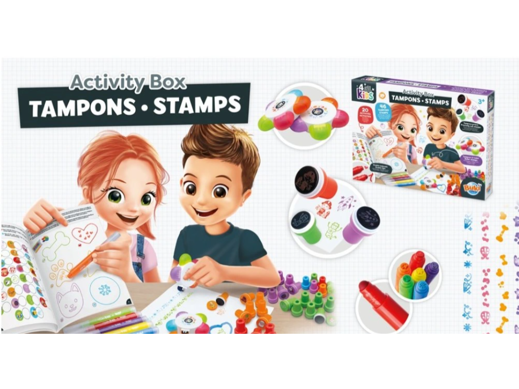 Zábavná a vzdelávacia sada s viac než 45 rôznymi pečiatkami, ktorá rozvíja kreativitu a jemnú motoriku detí.