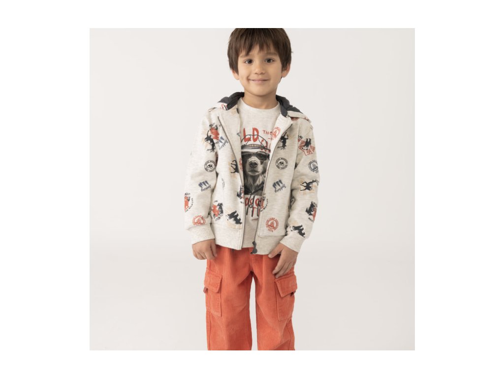 Chlapčenská mikina na zips BOBOLI je vyrobená z bavlny a zateplená jemným chlpkom. Mikina má odnimateľnú kapucu.