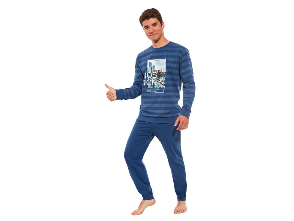 Pyžamo pro kluky s cestovatelským potiskem na přední straně. Chlapecké modré pyžamo od módní značky Cornette. Pyžamo v pruhovaném stylu má tričko s dlouhým rukávem a dlouhé kalhoty. Bavlněné tričko s kulatým výstřihem má rukávy a spodní lem zakončené do manžety. Jednobarevné kalhoty jsou v pase do pohodlné širší gumy. Nohavice jsou také zakončeny manžetou. Baleno v hezké krabičce. Pohodlné a příjemné pyžamo pro klidné sny. Chlapčenské pyžamo CORNETTE dlhy rukáv je vyrobené z vysokokvalitnej bavlny.