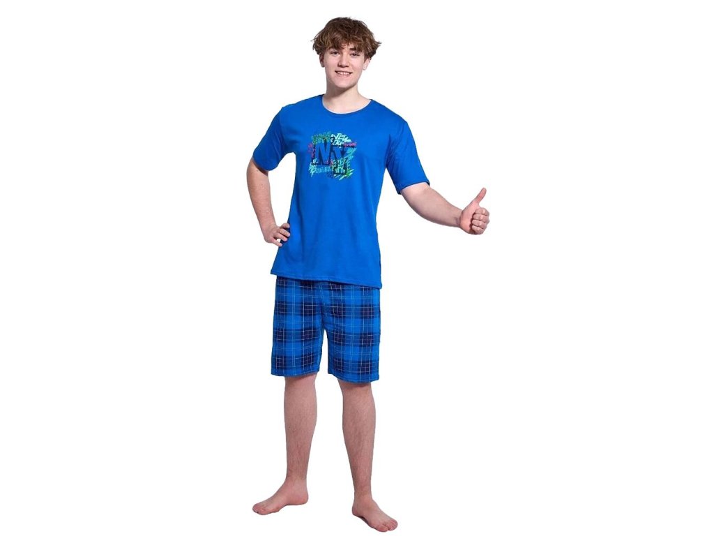 Bavlnené pyžamo s tričkom a kraťasmi z kolekcie Cornette. Modré tričko s krátkym rukávom má na prednej strane potlač. Kockované šortky sú v páse do širšej gumy, ktorá neškrtí. Pre pohodlnejšie nosenie majú dve postranné vrecká. Obľúbená značka pyžám u detí pre svoj originálny design a veľmi príjemné materiály.