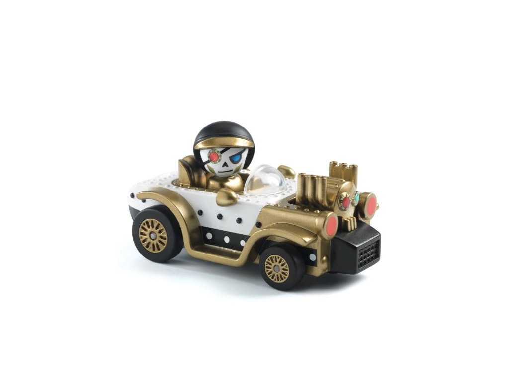 Mestské autíčko s figúrkou Moto Lebka je napoly kostlivec a napoly človek