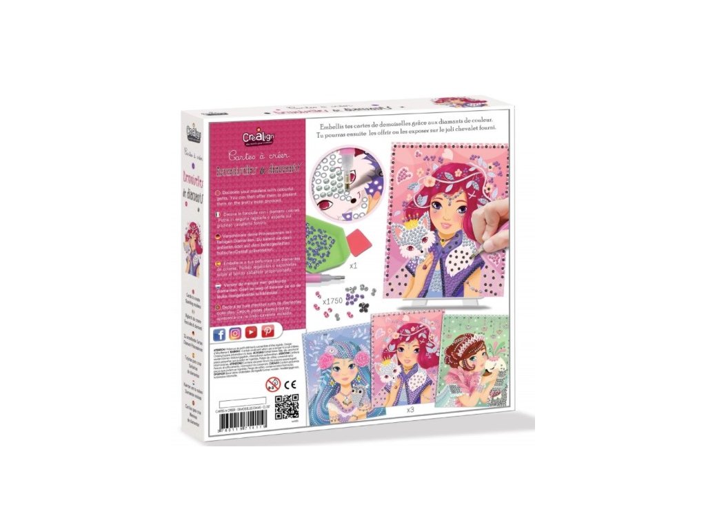 Jedinečná kreatívna súprava pre deti s nalepovacími kamienkami od francúzskej značky Crea Lign je vhodná pre deti od 5 rokov. Obsahuje 3 obrázky koní, 4 vrecúška s malými trblietavými kamienkami na nalepenie a 1 pero na nanášanie kamienkov. Vďaka nim si deti rozprávkové víly krásne dotvoria. V baleniach nechýba tiež 1 skladací stojan na vystavenie dimantovej mozaiky.