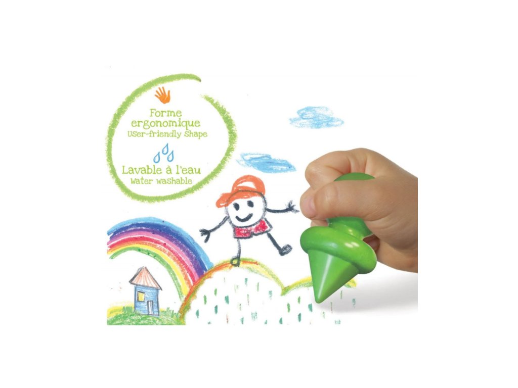 Moje prvé voskovky pre najmenšie deti od francúzskej značky Crea Lign sú veľké a ergonomicky tvarované. Dobre sa tak držia malým ručičkám a vďaka tomu sú vhodné už pre deti od 12 mesiacov. Nemusíte sa báť ani špiny. Dajú sa pekne umyť z ručičiek a vyprať z oblečenia. Ich zloženie je pre deti bezpečné.