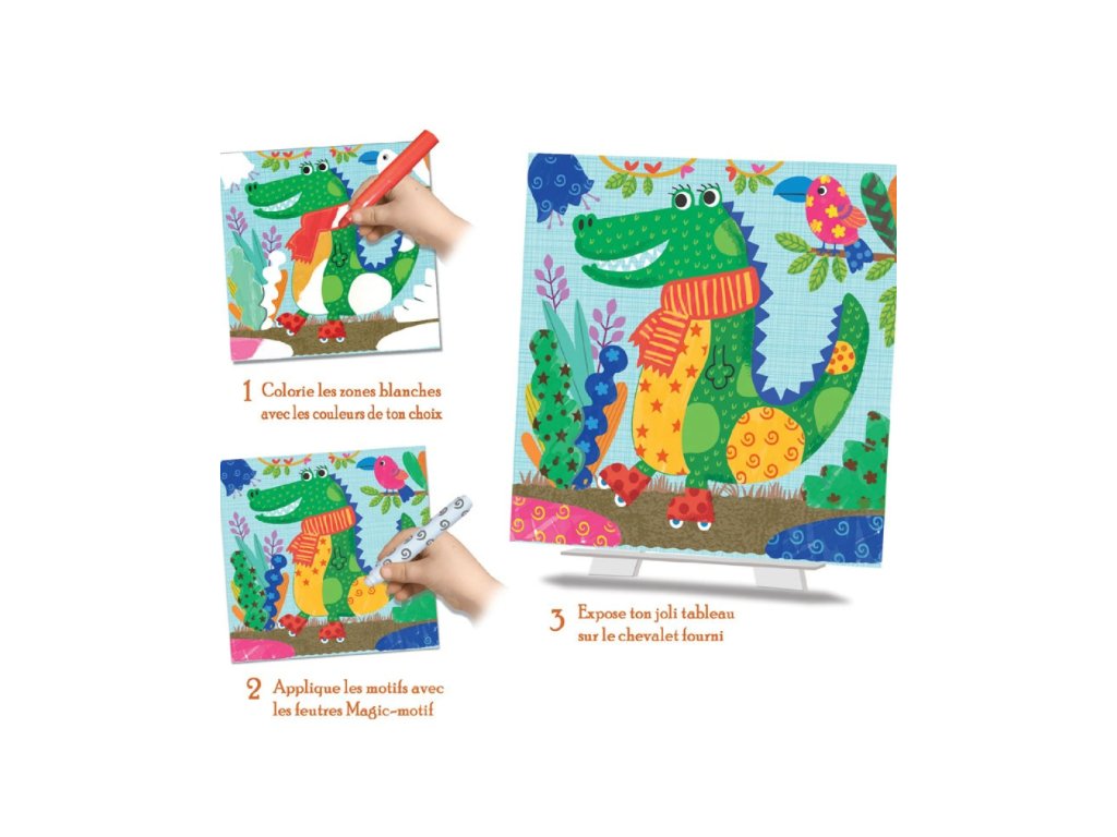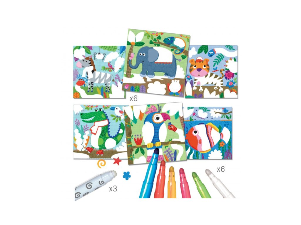 Kreatívna sada pre deti Tvorenie Magickými fixkami Zvieratká od francúzskej značky Crea Lign z radu Jednoduché obrázky je vhodná už pre deti od 3 rokov. Obsahuje 6 obrázkov zvieratiek na vymaľovanie, 6 fixiek a 3 blendery so vzormi a kúzelným atramentom. Nechýba ani jeden stojan na vystavenie obrázkov.