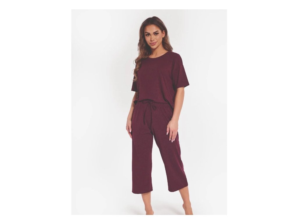 Štýlová a pohodlná dámska súprava - perfektné pyžamo aj domáce oblečenie Táto jedinečná súprava je kombináciou elegancie a pohodlia, ktorá bude fungovať ako štýlové pyžamo aj pohodlné domáce oblečenie. Vyrobená z vysoko kvalitnej zmesi materiálov poskytuje mimoriadnu mäkkosť, priedušnosť a elasticitu, pričom sa prispôsobí vášmu telu. Vrch súpravy tvorí tričko s krátkym rukávom, ktoré dodáva noblesu a jemný šarm. Nohavice 7/8 dĺžky, mierne rozšírené smerom dole, vybavené praktickou šnúrkou v páse, zaručujú perfektné strihanie a maximálnu slobodu pohybu. Je to skvelá voľba pre každé ročné obdobie - pohodlná, ženská a štýlová. Hodí sa na lenivé rána, večerný relax, ako aj na pokojné dni v pohodlí domova. Dámske pyžamo Cornette krátky rukáv je vyrobené z vysokokvalitnej bavlny.
