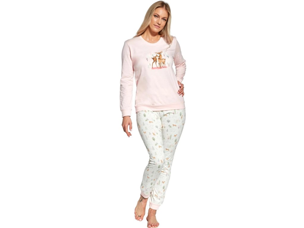 Dámske pyžamo Fall CORNETTE - vyrobené z kvalitnej a na dotyk príjemnej bavlny - ružové tričko s dlhými rukávmi - zdobené potlačou na prednej strane - dlhé vzorované nohavice Zloženie materiálu: 100% bavlna. Dámske pyžamo Cornette dlhý rukáv je vyrobené z vysokokvalitnej bavlny.