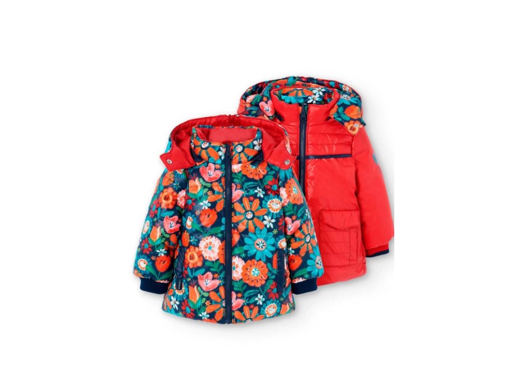 Dievčenská obojstranná zimná bunda s odopínacou kapucou.
