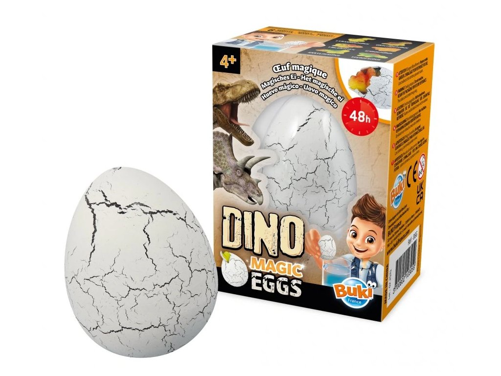 Sada obsahuje 6cm veľké vajce s ukrytou figúrkou dinosaura, ktorý po vyliahnutí narastie. (cca 10cm). Figúrka je náhodná, jedna zo 6tich motívov.