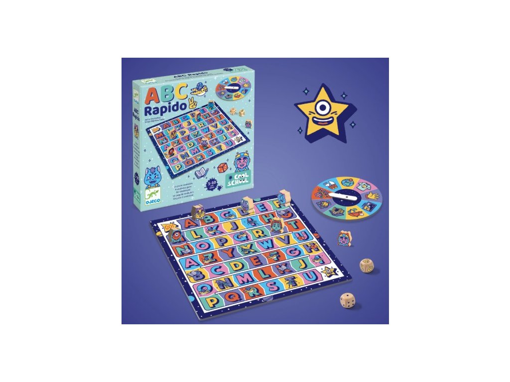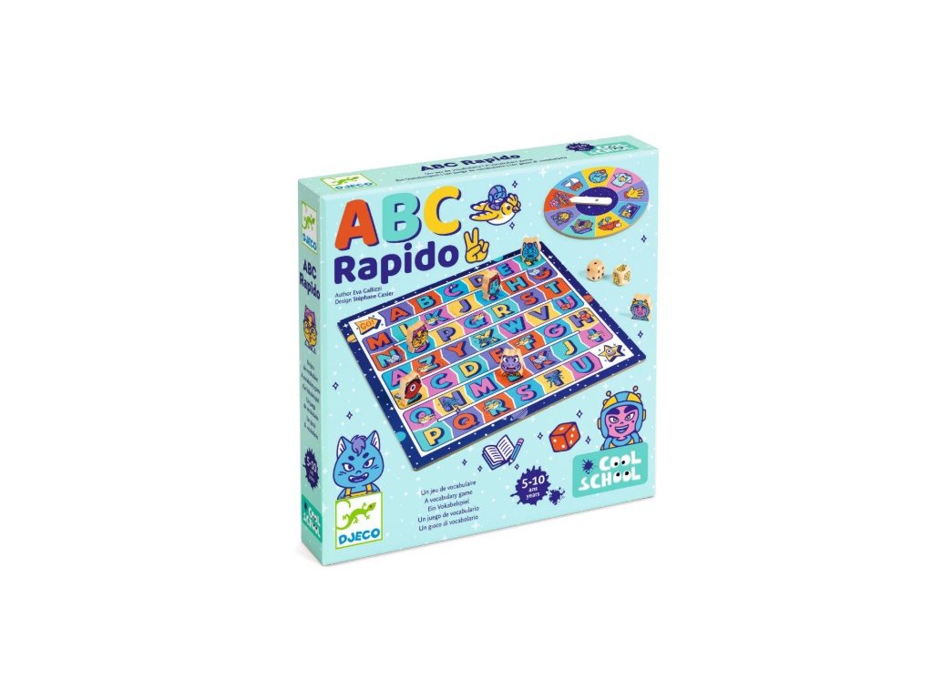 ABC Rapido zo série Cool School je dynamická stolová hra pre deti, ktorá hravou formou rozvíja slovnú zásobu, rýchle myslenie a postreh. Deti hľadajú slová začínajúce na určené písmeno a snažia sa reagovať čo najrýchlejšie – hra tak spája učenie s napínavou zábavou.