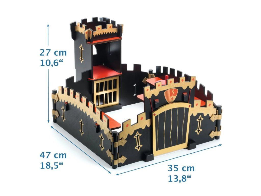 Čierny hrad pre rytierov z kolekcie Arty Toys je veľká herná kulisa, ktorá zmení detskú izbu na stredoveké bojisko.Hrad je vyrobený prevažne z dreva s doplnkami z plastu a dá sa jednoducho zložiť bez skrutiek.Najväčším lákadlom je funkčný padací most a možnosť hrad rôzne rozložiť – ako uzavretú pevnosť alebo dlhý hradný múr.Figúrky nie sú súčasťou balenia, takže si hru môžete vyskladať podľa vlastnej posádky.