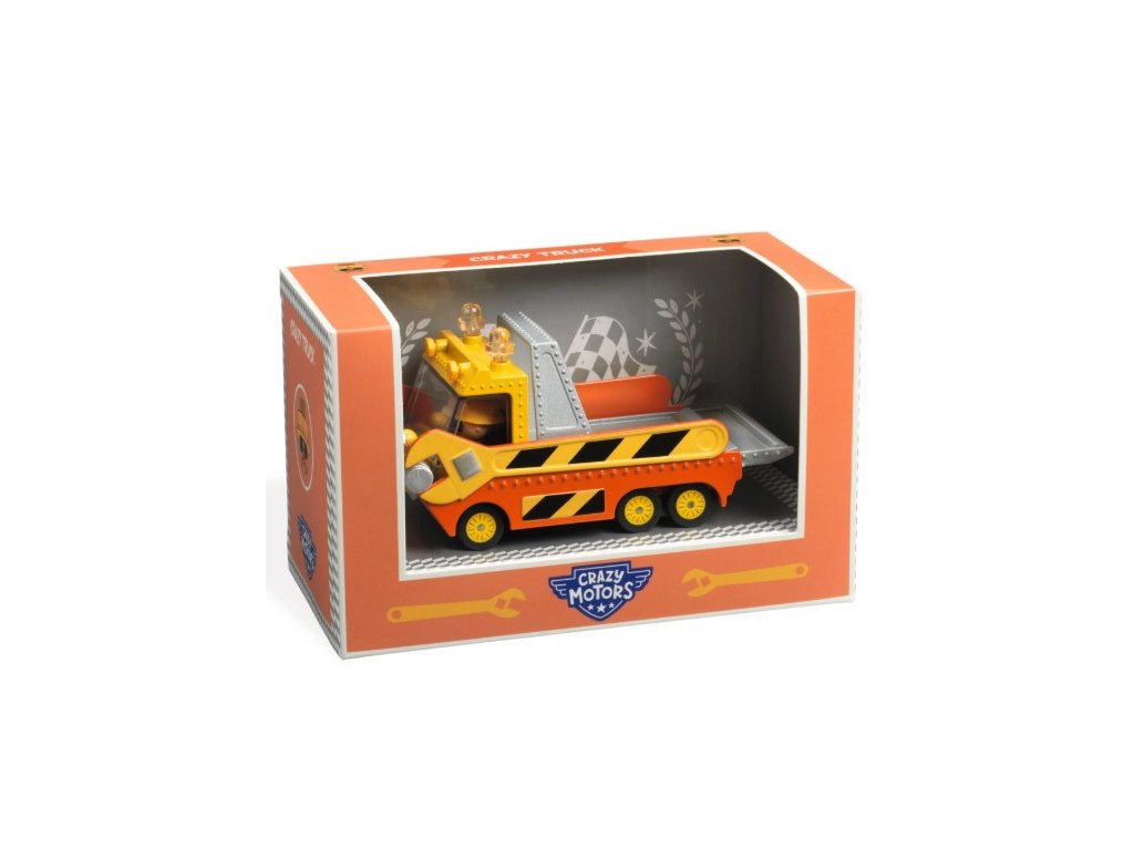 Bláznivá odťahovka (Crazy Truck) zo série Crazy Motors od značky Djeco. Autíčko má kovové telo, voľne sa otáčajúce kolieska a výrazné farebné detaily typické pre kolekciu Crazy Motors. Vďaka kompaktným rozmerom je ideálne na samostatnú hru, zbieranie aj kombinovanie s ďalšími vozidlami a hernými doplnkami z tejto série.