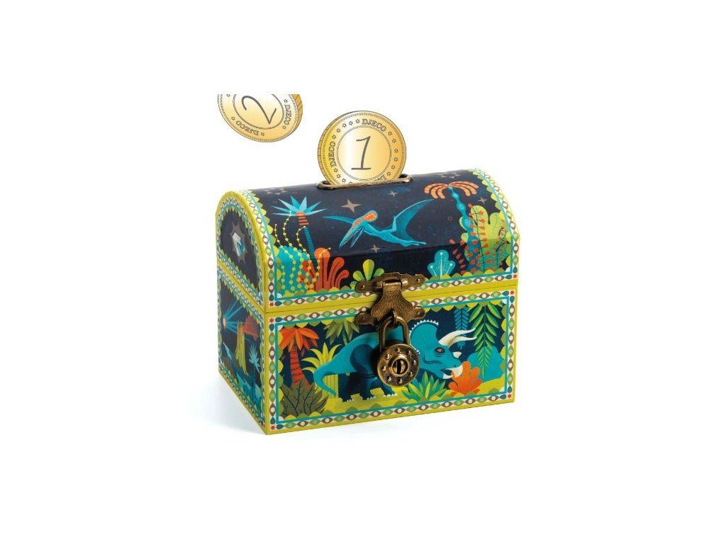Djeco Krásna drevená pokladnička s motívom dinosaurov