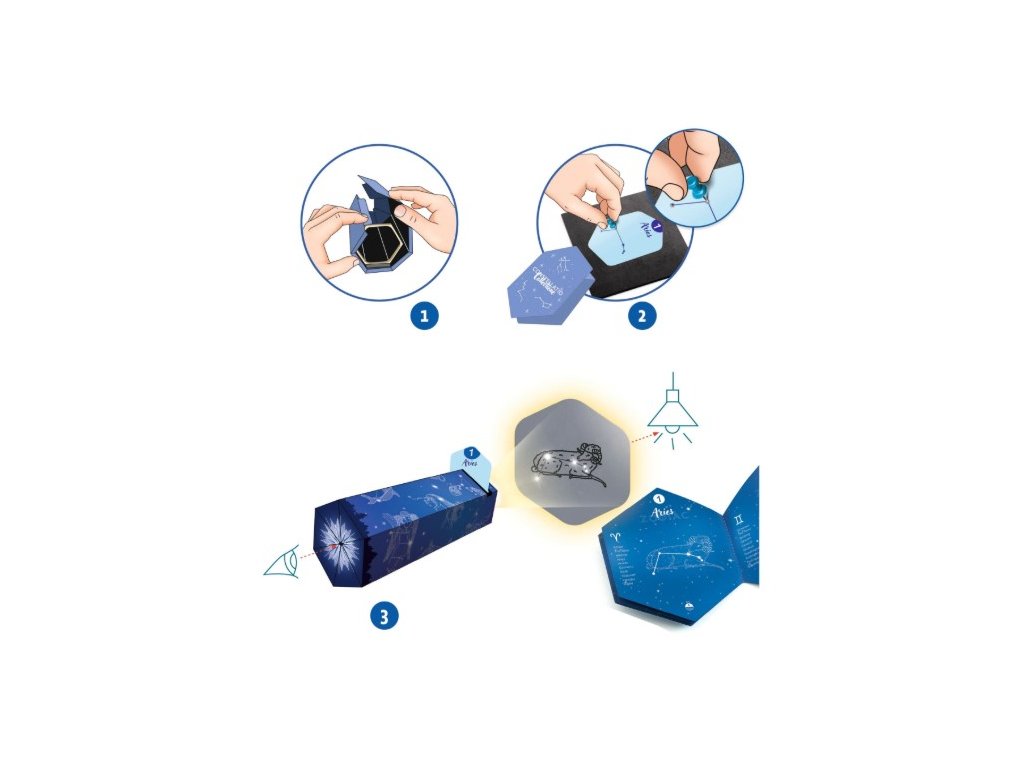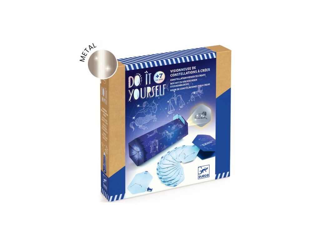 Kreatívna sada DIY – Súhvezdia od Djeco prináša deťom originálny spôsob, ako spoznať nočnú oblohu a 26 známych súhvezdí — znamenia zverokruhu aj zvieracie súhvezdia. Deti si pomocou dierovačky označia hviezdy na kartách a potom ich vložia do vlastnoručne zloženého prehliadača. Keď sa cez neho pozrú, pred očami sa im zjaví skrytá ilustrácia súhvezdia. Súčasťou sady je aj brožúrka, ktorá pomôže deťom umiestniť súhvezdia na oblohu. Ide o jedinečné spojenie tvorenia, hry, jemnej motoriky a vzdelávania. Produkt je vyrobený z FSC® certifikovaného papiera a kartónu, čo zaručuje ekologicky zodpovednú výrobu.