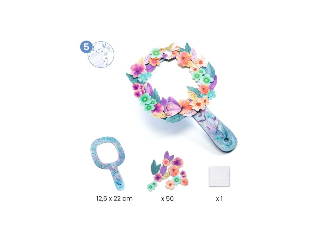Zrkadlo ozdobia 50 laminovanými ilustrovanými dielikmi, ktoré sa lepia pomocou penových obojstranných lepiek. Vrstvením vznikne krásny 3D efekt.