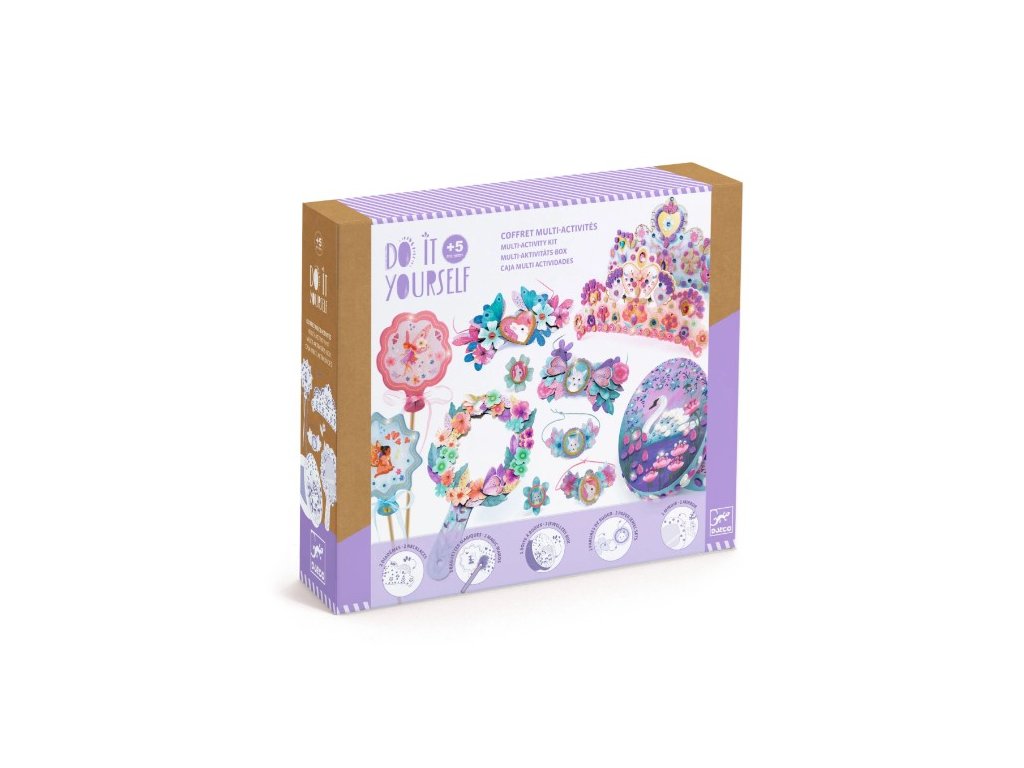 Veľká kreatívna sada Nymphea od Djeco je dielnička pre deti, ktoré milujú šperky a rozprávkový svet. Obsahuje 5 rôznych kreatívnych aktivít, z ktorých deti vytvoria až 12 hotových výrobkov – od diadémov a čarovných paličiek až po šperky, šperkovnicu a 3D zrkadielko. Sada je navrhnutá tak, aby deti postupovali podľa obrázkového návodu a pritom mali veľa priestoru pre vlastnú fantáziu – vyberajú si farby, kombinujú samolepky, vrstvia papierové dieliky a vytvárajú si vlastnú ligotavú kolekciu doplnkov. Všetky projekty sú prakticky použiteľné.