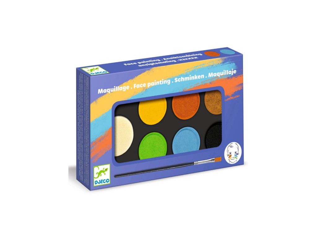 Sada farieb na tvár v rôznych odtieňoch (hnedá, oranžová, červená, bledozelená, modrá, čierna)