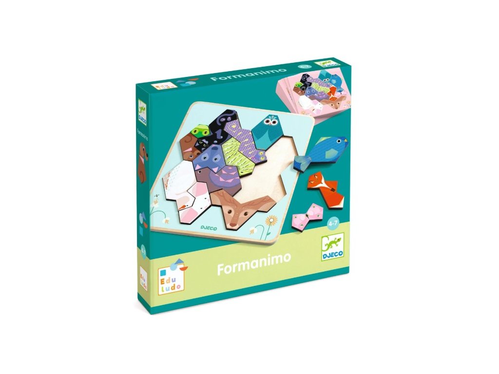 FormAnimo – hra s tvarmi je hravá edukačná hra, ktorá deti zoznamuje so základnými geometrickými tvarmi prostredníctvom skladania veselých zvieratiek. Deti prikladajú farebné drevené dieliky na podložky s predlohami a učia sa tak rozpoznávať tvary, farby a ich vzájomné vzťahy. Hra je navrhnutá tak, aby bola jednoduchá, zrozumiteľná a postupná – dieťa môže pracovať podľa predlohy alebo vytvárať vlastné obrázky podľa fantázie. Ideálna aktivita pre pokojné sústredenie doma, v škôlke alebo v detskom centre.