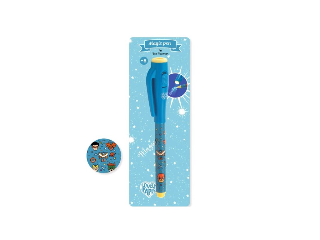 Vstúpte do sveta čarovných správ s perom Ben z kolekcie Lovely Paper! Toto pero píše neviditeľným atramentom, ktorý sa odhalí len pod UV svetlom ukrytým vo vrchnáku. Jednoducho stlačte tlačidlo a vaše tajné odkazy ožijú pred očami. Pero má praktický fixkový hrot a vrchnák s UV svetlom je vybavený klipsom na pripnutie k zošitu alebo vrecku.
