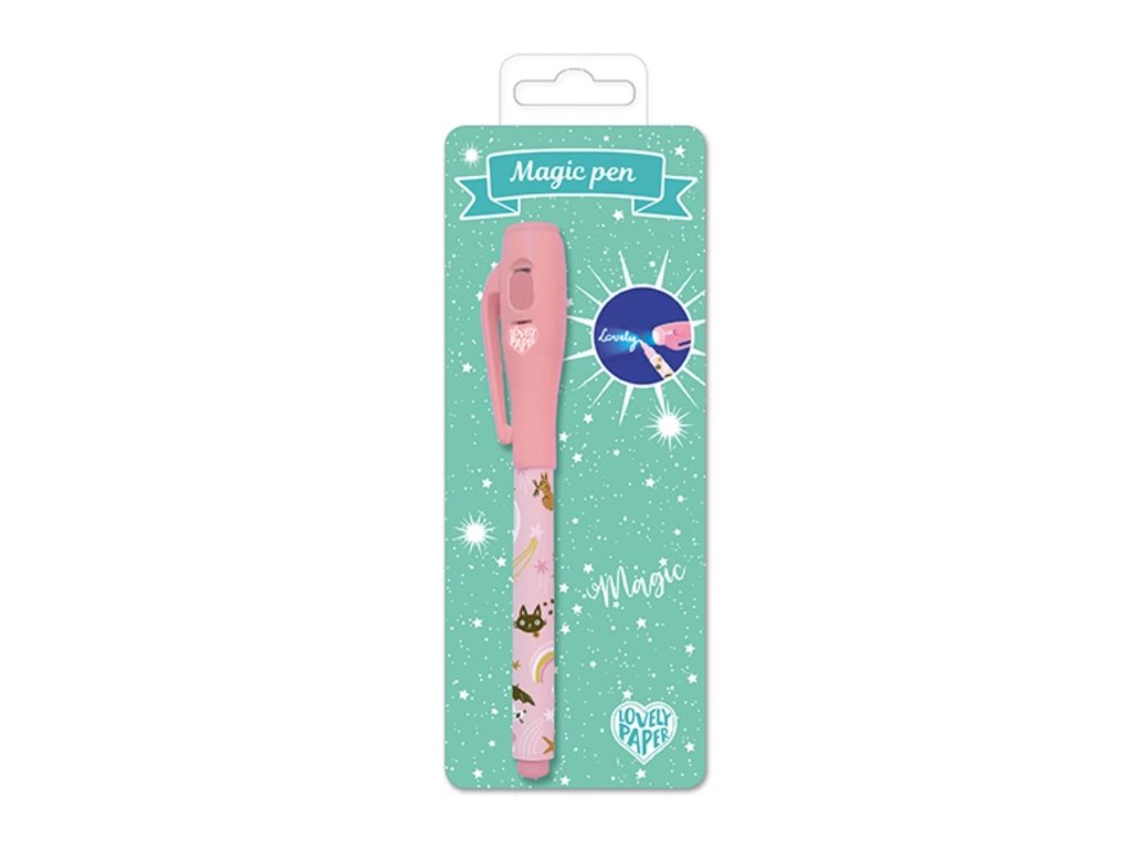 Objavte originálne pero Lucille s neviditeľným atramentom, ktoré je ideálne na písanie správ, ktoré majú zostať v tajnosti. Vaše zápisky sa odhalia len pod UV svetlom, ktoré je integrované vo vrchnáku pera. Stačí stlačiť tlačidlo na zapnutie/vypnutie svetla a vaše tajomstvá ožijú pred očami. Vrchnák obsahuje aj praktický klips, vďaka ktorému môžete pero pripnúť na zošit alebo vrecko. Pero má pohodlný fixkový hrot a farebné telo zdobia krásne ilustrácie.