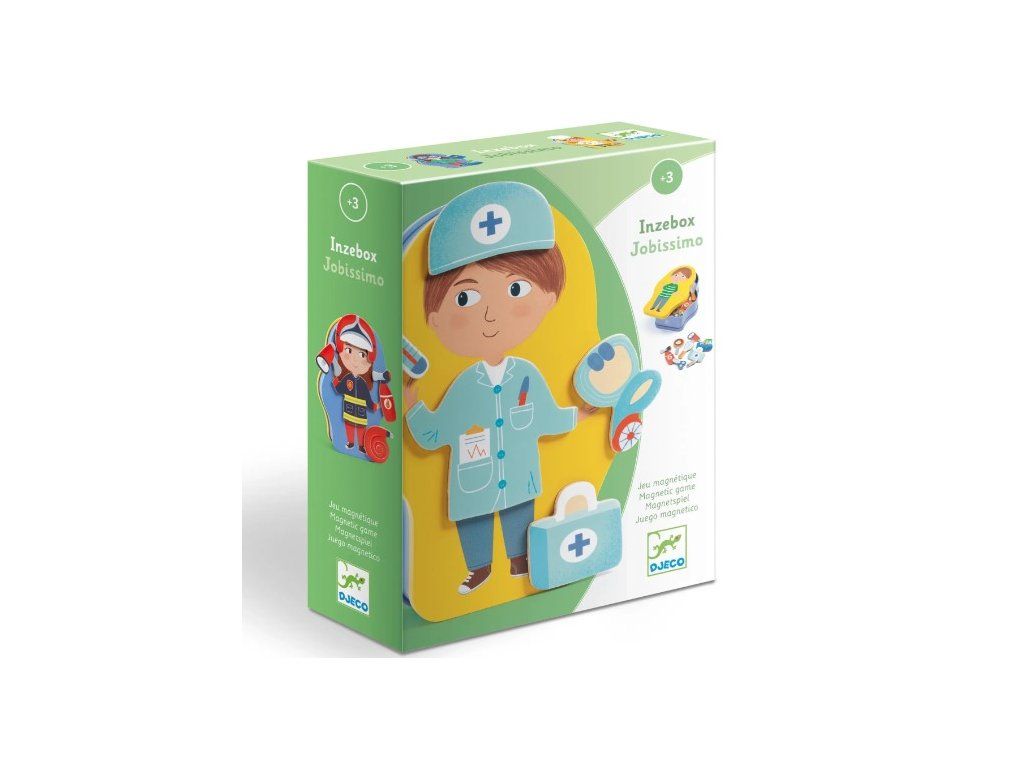 S magnetickou hrou Povolania z kolekcie InZeBox sa deti naučia spoznávať rôzne profesie hravou a interaktívnou formou. Pomocou drevených magnetiek Jobissimo môžu skladať postavičky pracovníkov v typických uniformách a rozvíjať kreativitu, predstavivosť a jemnú motoriku.