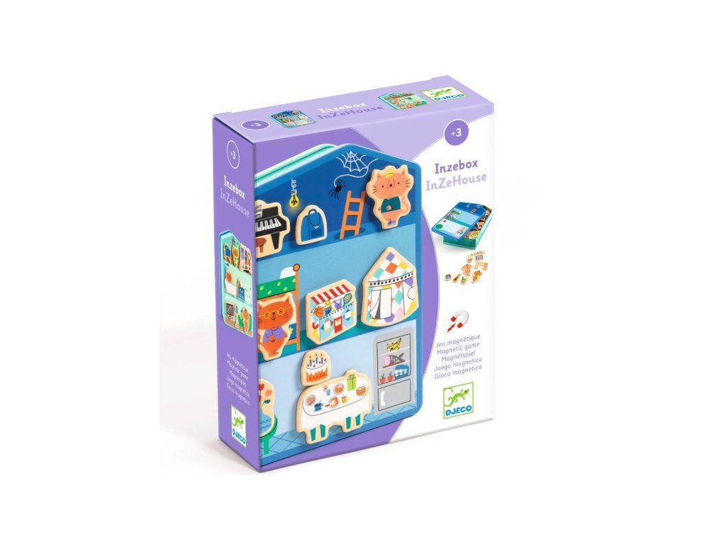 Magnetická hračka Domček INZebox od značky Djeco je hravá a praktická kreatívna hra pre deti. Plechový domček slúži ako magnetická plocha aj úložný box. Deti naň pomocou drevených magnetických dielikov vytvárajú vlastné scénky a príbehy s postavičkami.