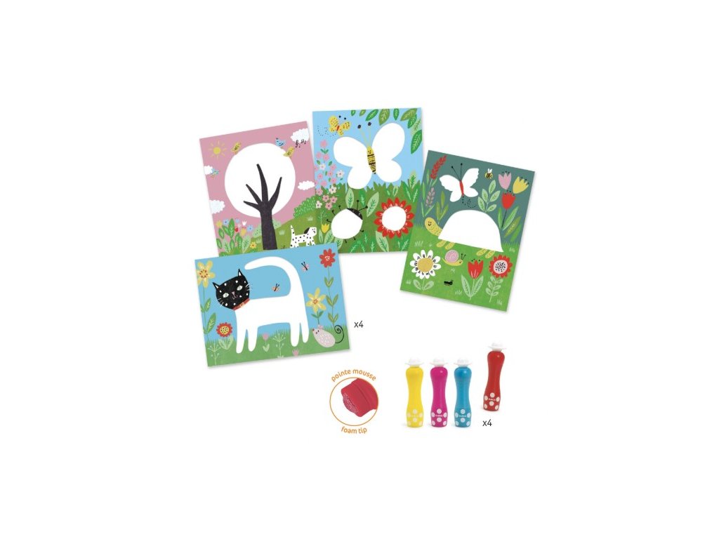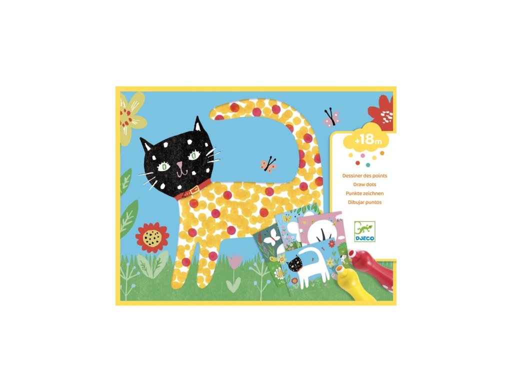 Maľovanie Bodky je tvorivá sada navrhnutá pre najmenšie deti, ktoré ešte len objavujú farby. Namiesto štetca deti používajú hrubé penové fixky so špeciálnym „bodkovacím“ hrotom – jednoducho pritlačia a vytvárajú farebné bodky, ktoré postupne vyplnia obrázok.