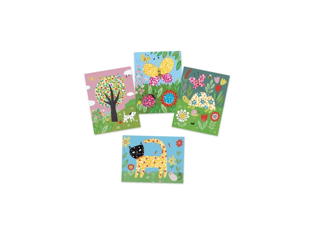 Súčasťou sú laminované obrázkové podklady, ktoré sa dajú utrieť a použiť znova. Deti tak môžu tvoriť opakovane, skúšať rôzne kombinácie farieb a pri tom si prirodzene precvičovať jemnú motoriku, koordináciu oko–ruka aj rozpoznávanie farieb.