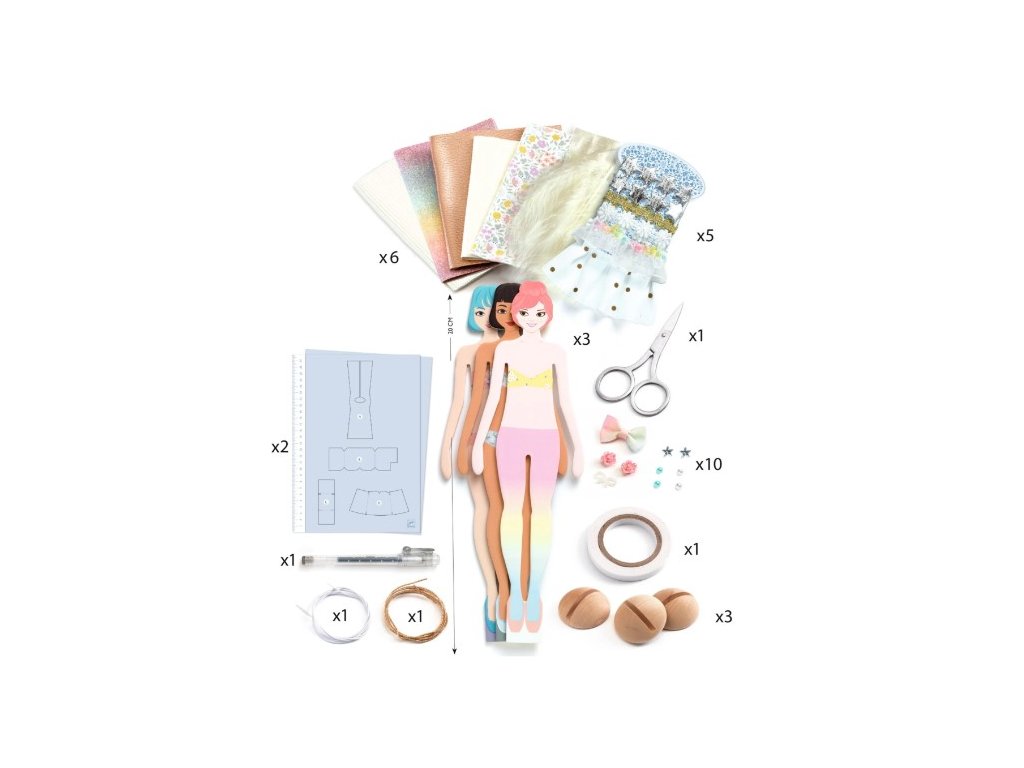 S touto kreatívnou sadou si deti môžu vytvoriť unikátne módne outfity pre 3 stojace bábiky (cca 25 cm výška).