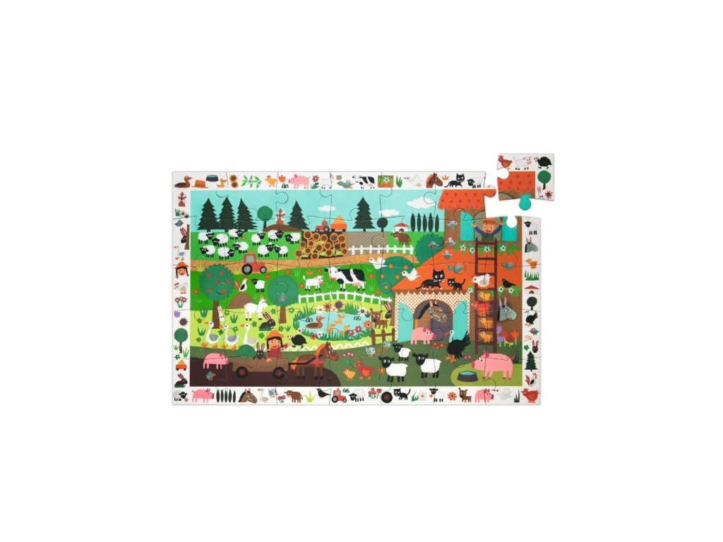 Objavovacie puzzle – Farma je zábavné a pestré puzzle s množstvom veselých obrázkov zo života na farme. Po zložení dieťa objavuje scény plné zvierat a zelene a môže pri tom hľadať rôzne detaily ukryté v obrázku. Puzzle je navrhnuté tak, aby zapojilo pozornosť, predstavivosť a schopnosť pozorovať detaily.