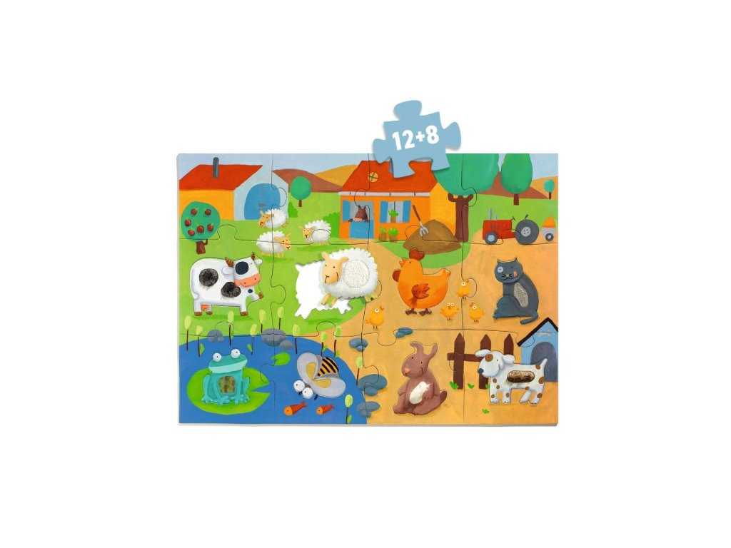 Obrovské hmatové puzzle – Farma je jedinečná výtvarná a hmatová hračka, která kombinuje klasické skládání puzzle s přesně tvarovanými obrysy zvířátek.