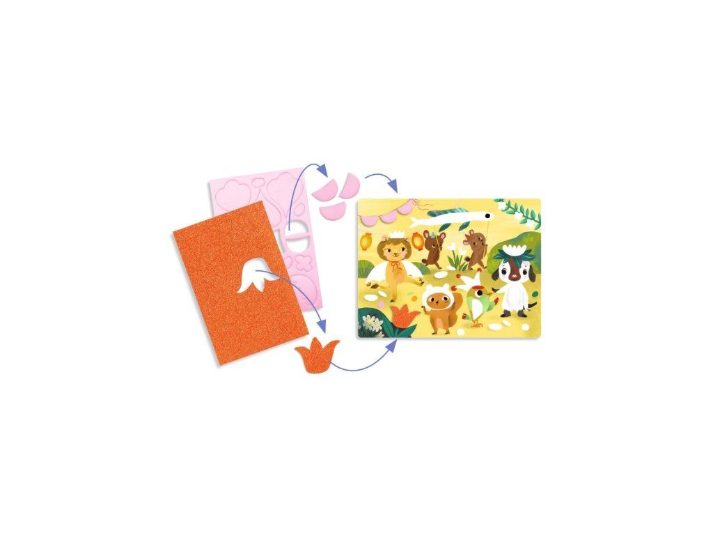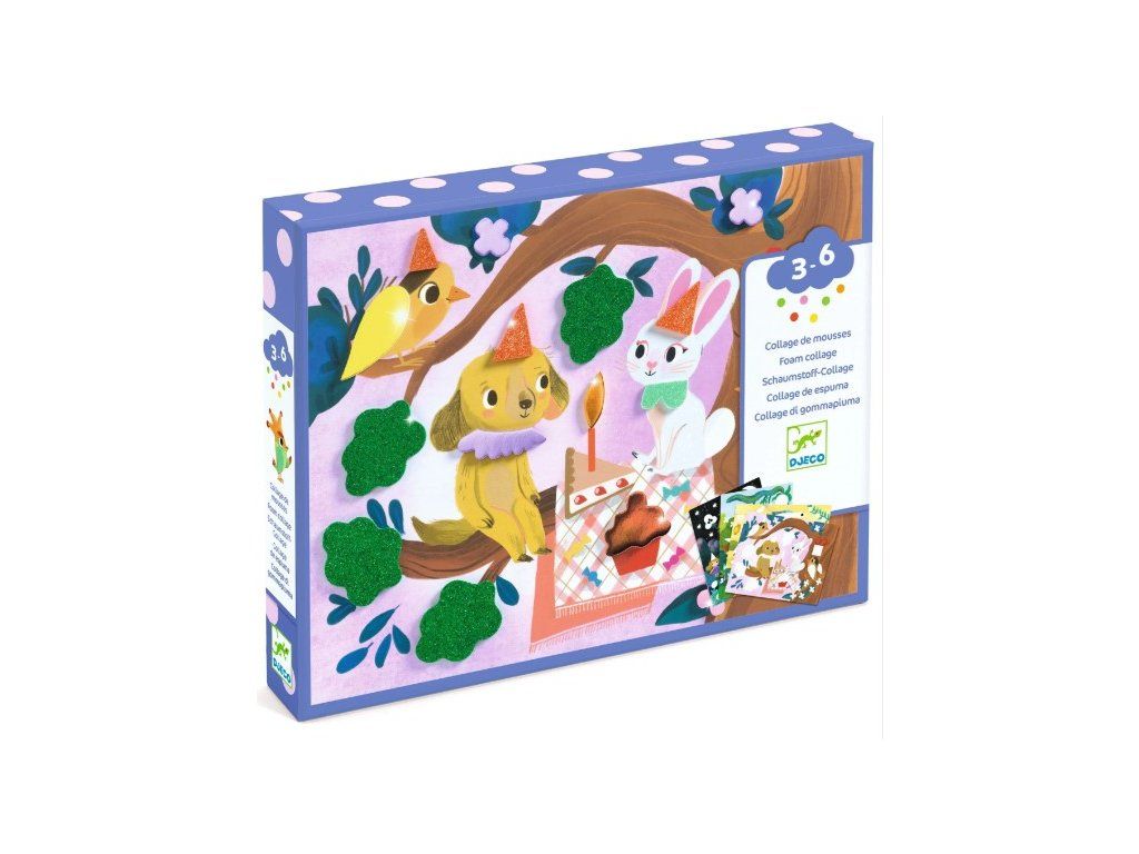 Penové koláže – Trblietavé oslavy sú kreatívna sada, v ktorej deti vytvoria 4 rozprávkovo slávnostné obrázky lepením metalických a trblietavých penových samolepiek.Je to hravá „mozaika“ bez farieb a bez neporiadku – dieťa len vyberá správne tvary a postupne dopĺňa scénu, až kým sa obrázok úplne nerozžiari.