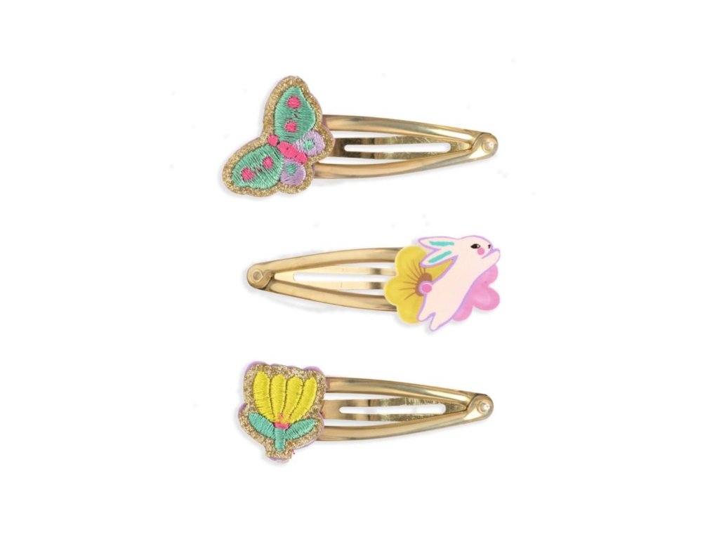Sada troch sponiek Pensée je krásny vlasový doplnok na každý deň aj na slávnostnejšie príležitosti. Kovové sponky majú odolný epoxidový povrch, vďaka ktorému držia spoľahlivo a zároveň sú šetrné k vlasom. Ozdoby tvoria jemné vyšívané motívy, ktoré účes pekne doladia.