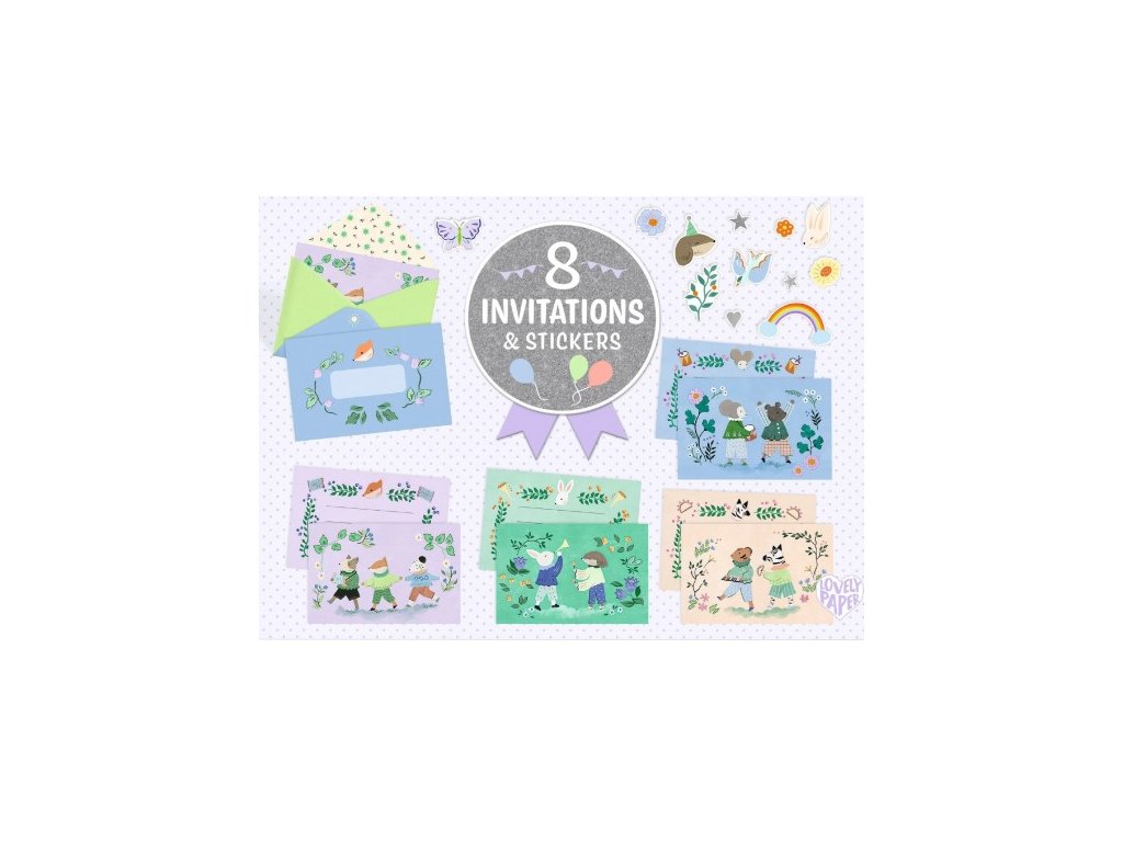 Sprievod zvierat: 8 pozvánok a samolepiek je zábavná sada pre deti, ktorá obsahuje 8 farebných pozvánok so zvieracou témou, 8 ilustrovaných obálok a samolepky na ich ozdobenie. Sada je ideálna na narodeninové oslavy, tematické párty alebo na tvorivé aktivity.