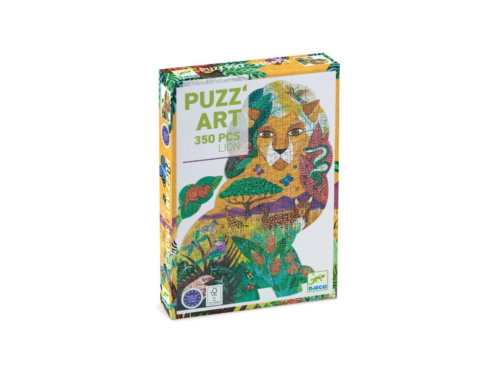 Umelecké puzzle – Lev (350 dielikov) je originálne puzzle z kolekcie Puzz’Art od značky Djeco, ktoré nemá tradičné hrany ani rohy, ale organický tvar majestátneho leva naplneného farebným divokým svetom. Puzzle nie je len klasická skladačka, ale estetický a kreatívny zážitok – každý dielik je presne tvarovaný tak, aby bol skladací proces ešte zaujímavejší a výsledok pôsobil pôsobivo.