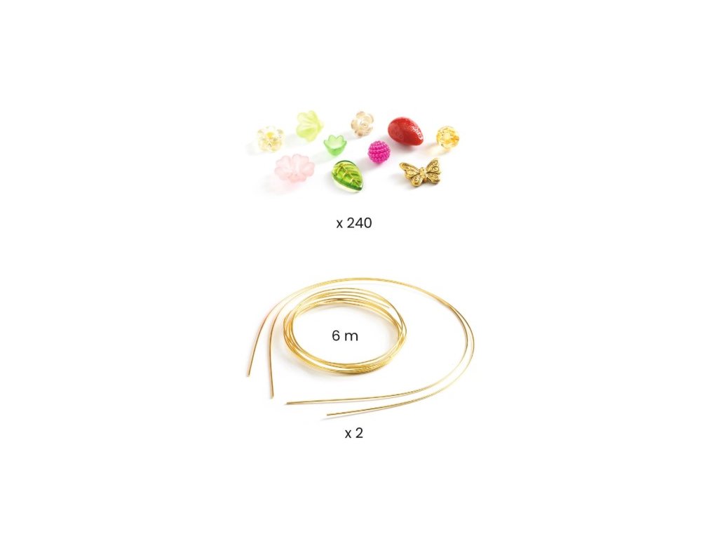 V balení sa nachádza 240 farebných akrylových korálok, 2 zlaté čelenky a flexibilná metalická niť, ktorá umožňuje vytvoriť jemné, elegantné a pevné vzory. Deti môžu korálky navliekať, kombinovať a aranžovať podľa predlohy alebo podľa vlastnej fantázie – výsledkom sú jedinečné diadémy, ktoré sa stanú obľúbeným doplnkom hry aj kostýmov. Súčasťou sady je ilustrovaný návod krok za krokom, ktorý je intuitívny a ideálny aj pre menšie deti – bez nutnosti textového čítania. Tvorenie je vďaka tomu jednoduché, hravé a veľmi uspokojujúce.