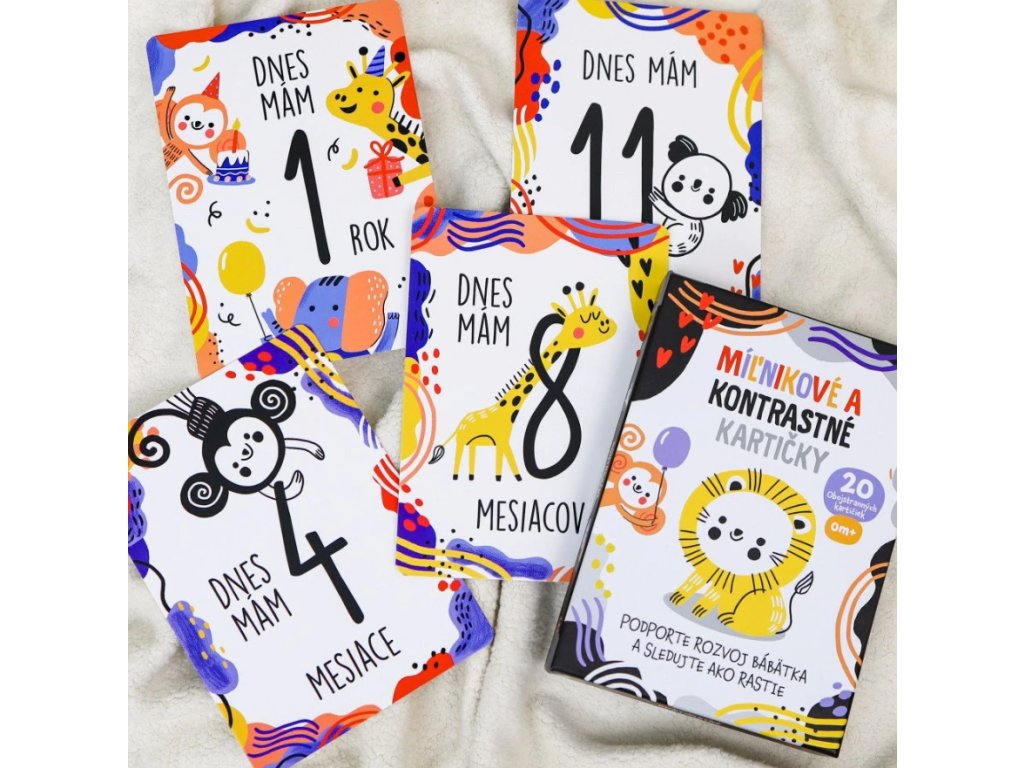Míľnikové a kontrastné kartičky sú perfektným darčekom pre rodičov, ktorí chcú uchovať vzácne spomienky na každý dôležitý okamih v živote svojho bábätka, a zároveň podporiť jeho zrakový vývoj. Sada obsahuje 20 obojstranných kartičiek, z ktorých každá strana prináša niečo jedinečné: na jednej nájdete míľnikové kartičky, ktoré zachytia prvé kroky, úsmevy a ďalšie dôležité momenty, a na druhej strane kontrastné kartičky, ktoré stimulujú zrakový vývoj novorodencov. Spojenie týchto dvoch funkcií robí túto sadu ideálnym nástrojom pre každodenné používanie.