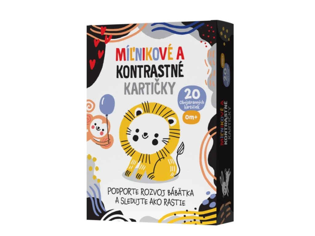 Na druhej strane každého obojstranného kúska nájdete kontrastné kartičky, ktoré sú mimoriadne dôležité počas prvých mesiacov života bábätka. V tomto období sa zrak dieťatka stále vyvíja, a silné kontrasty medzi čiernou, bielou, červenou a žltou farbou pomáhajú bábätku zaostriť a vnímať okolité objekty. Kontrastné kartičky sú špeciálne navrhnuté tak, aby stimulovali zrakový vývoj bábätka, čím prispievajú k jeho kognitívnemu rastu. Vďaka jasným, výrazným farbám a jednoduchým vzorom sa tieto kartičky stávajú ideálnym nástrojom na podporu zdravého vývoja zraku už od prvých dní života.