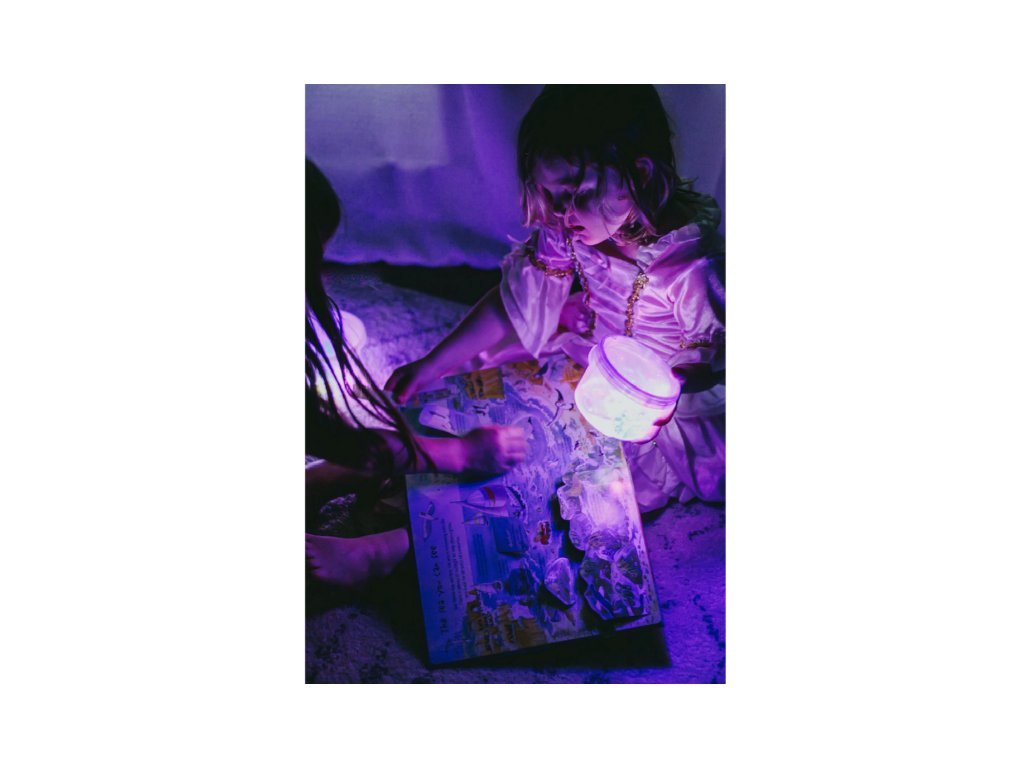 - Farebná terapia: Rôzne farby svetla môžu ovplyvniť náladu dieťaťa – modrá upokojuje, žltá povzbudzuje a zelená prináša pocit pokoja