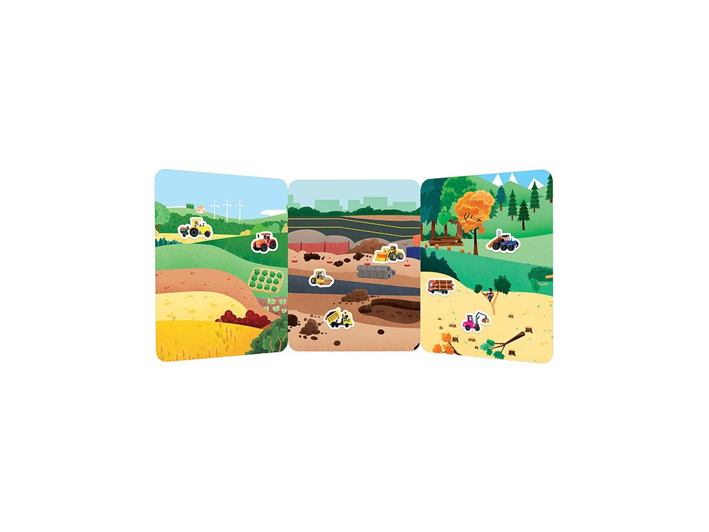 Hra obsahuje veľké skladacie pozadie a 1 list silikónových samolepiek, ktoré možno používať opakovane. Deti tak môžu tvoriť rôzne scénky podľa vlastnej fantázie.