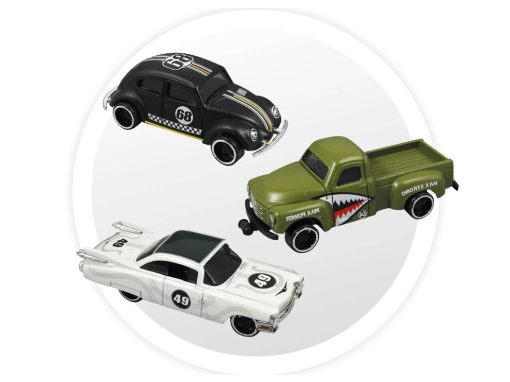 Súčasťou balenia sú aj 3 malé autíčka (náhodné modely), s ktorými môžu deti prechádzať po meste a užívať si hru.