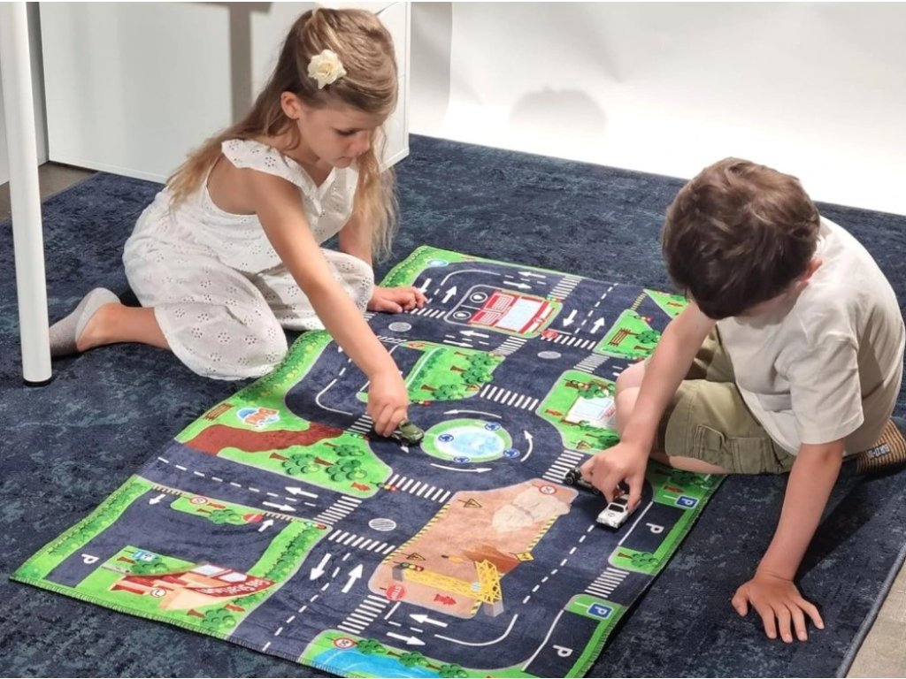 Tento interaktívny hrací koberec je ideálny pre deti, ktoré milujú autíčka a chcú sa zároveň naučiť základy cestnej premávky.