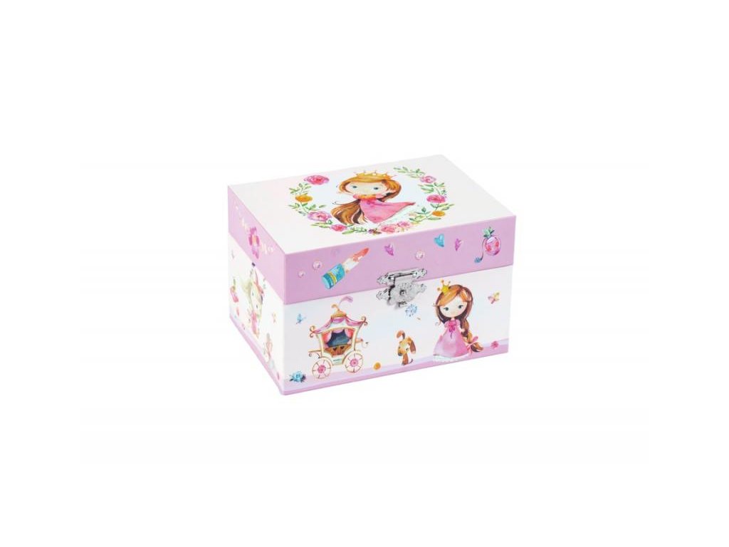 Hracia skrinka s princeznou, ktorá sa točí. Skrinka po otvorení hrá a princezná sa točí. Vyrobené z tvrdého odolného papiera.
