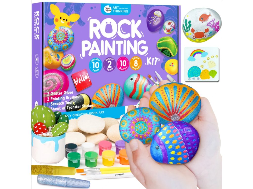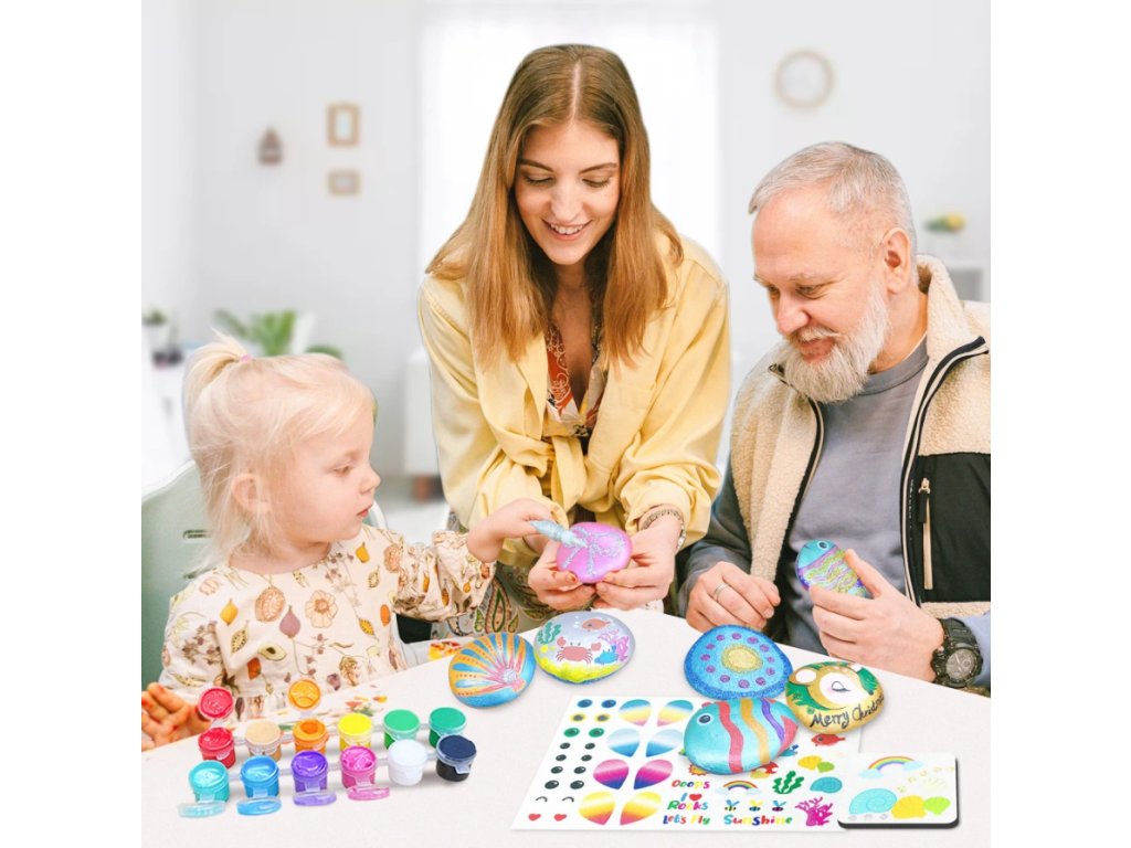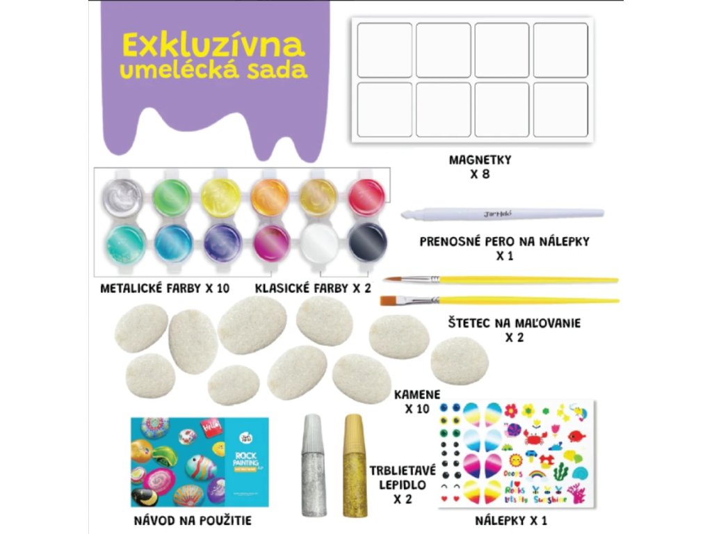 Sada na maľovanie kameňov od Jarmelo premení každé dieťa na malého umelca s veľkou fantáziou. Vďaka predpripraveným kamienkom a žiarivým farbám sa príroda stáva plátnom, na ktoré môžu deti kresliť svoje nápady. Táto aktivita zabaví, upokojí a zanechá za sebou krásny výsledok, ktorý si môžete vystaviť doma alebo ukryť v záhrade.