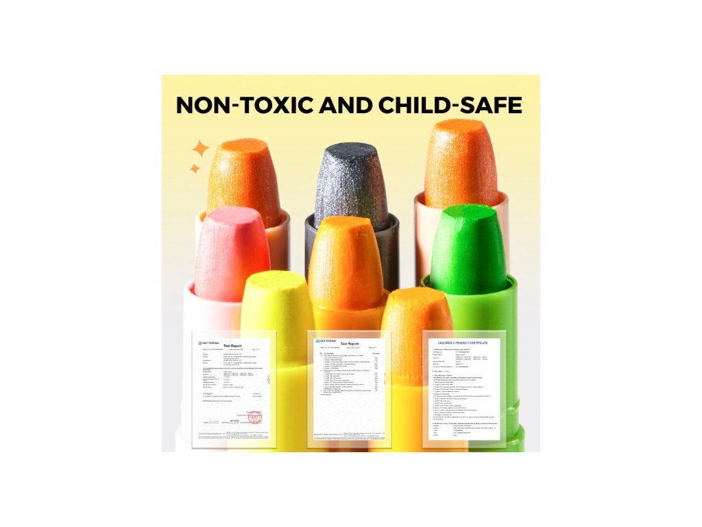 - Bezpečné zloženie – voskovky sú vyrobené z glycerínu a sú zdravotne nezávadné. Ideálne aj na maľovanie na tvár.